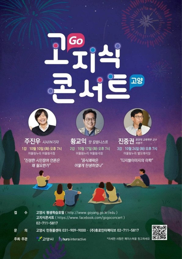 '고양, 함께하는 지식 콘서트'라는 의미의 '고지식콘서트'는 시민 누구나 참석할 수 있는 열린 강좌로 오는 12월까지 총 10회에 걸쳐 진행된다.