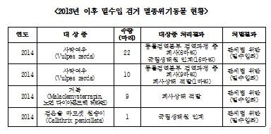 김삼화 의원에 따르면, 2015년에서 2017년까지 중국에서 일본으로 불법 반입된 조류에서 고병원성 조류인플루엔자I(HPAI)가 3번이나 검출됐고, 2004년엔 벨기에에서 태국으로 밀수 중 적발된 뿔매 한쌍에서도 HPAI 바이러스가 검출됐다. 2004년에도 말레이시아에서 태국으로 밀수한 닭의 사체를 먹은 닭과 메추리에서 고병원성 HPAI가 발생했다.