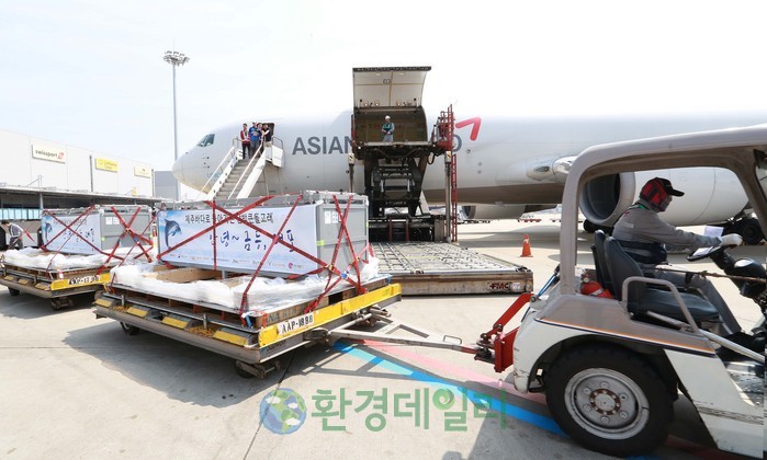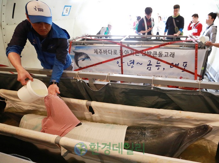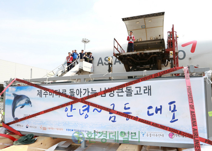 [환경데일리 한영익 기자]아시아나항공은 5월 22일(월) 오전 10시 30분 화물 전세기편으로 돌고래 두 마리(금등, 대포)를 인천에서 제주로 무사히 수송했다.