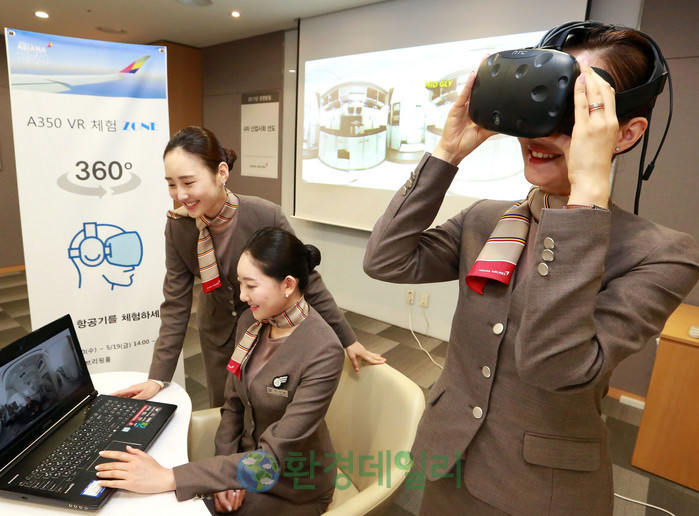 2017년을 '4차 산업사회 선도'의 해로 경영방침을 세운 아시아나항공(사장 김수천)이 4차 산업 기술 적용의 일환으로 22일부터 캐빈승무원 교육에 VR(가상현실) 교육을 도입했다. VR 동영상을 이용한 A350기종 체험 과정을 캐빈승무원 초기/정기교육에 새롭게 추가한 것.
