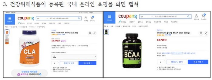 강 의원이 식약처 지정 건강위해식품 목록 중 일부를 인터넷 포털과 대형 온라인 쇼핑몰 등에서 검색한 결과 이 물품들이 직구 대행을 통해 국내에 들어와 유통되고 있음을 확인했다.