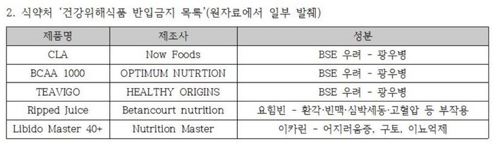 특히, 이미 광우병 유발의심이 되는 건강보조식품이 온라인 인터넷쇼핑몰을 통해 국내 소비자들이 구매하고 있는데 보건당국은 물론 관세당국은 손을 놓고 있는 것으로 드러났다.