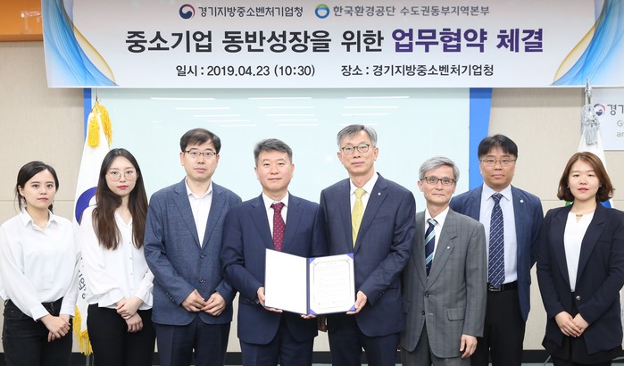 [환경데일리 최진경 기자]한국환경공단 수도권동부지역본부(본부장 김종철)는 우수 중소기업제품 판로지원 등 민관 상생협력을 위해 23일 오전 11시 경기지방중소벤처기업청(청장 백운만)과 업무협약을 체결했다.
