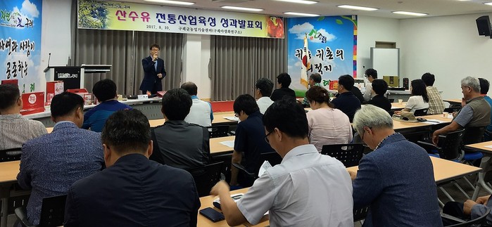 산수유 전통산업육성사업은 산업통상자원부에서 지원받아 2014년부터 3년 동안 추진한 사업으로, 이번 성과발표회에 그동안 산수유 풀뿌리기업으로 선정된 산동농업협동조합, 선명농원, 지리산과하나되기, 그리올푸드영농조합법인 대표를 비롯한 산수유 농가 등 50여 명이 참석했다.