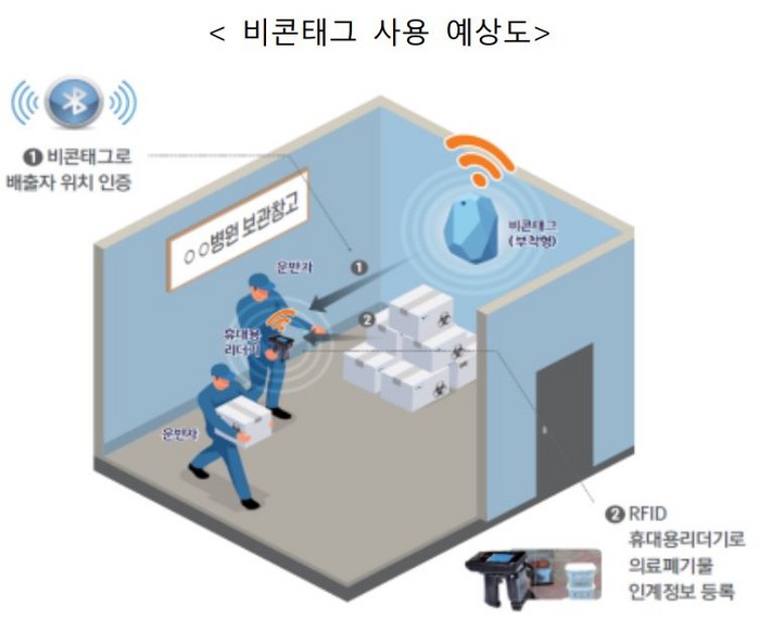 앞으로는 배출업체들은 의료폐기물 배출장소에 비콘태그를 부착해야 하며, 수집·운반 업체는 의료폐기물 인계서를 올바로시스템에 전송하려면 배출장소에 직접 방문해 배출자 정보를 인식시켜야 한다.