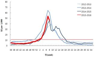 | ▲주간 인플루엔자의사환자 분율 © 환경데일리 |