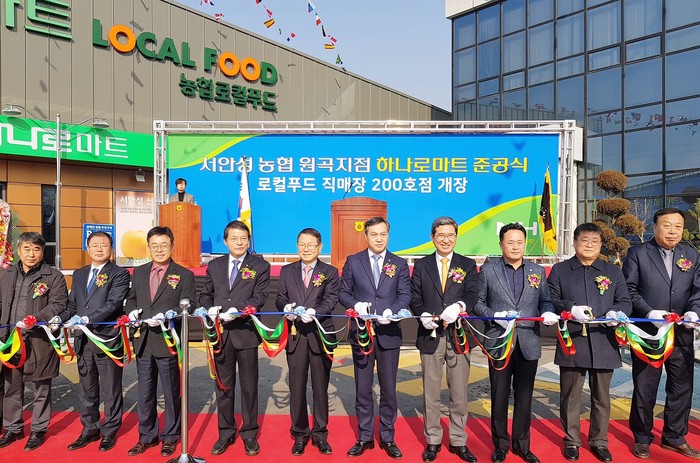 [환경데일리 유혜리 기자]농협(회장 김병원)은 지난 22일 경기 서안성농협(조합장 윤국한) 원곡점에서 로컬푸드 직매장 200호점 개장 기념행사를 개최했다. 이날 개장식에는 김원석 농업경제대표이사를 비롯해 김학용 국회의원(경기 안성시, 자유한국당), 양운석 경기도의회 의원 등 200여명이 참석했다.