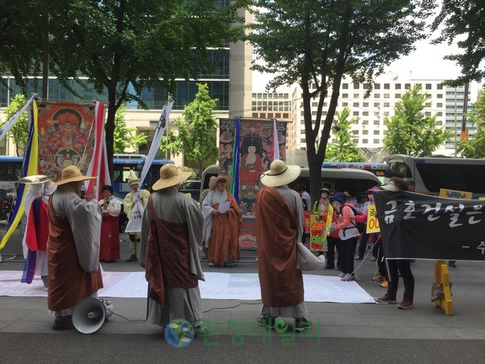 청호 스님은 "국토부 산하 국토지방관리청의 우리의 주장을 묵살해왔고 답변조차 극히 불성실하고 언론적인 태도만 주장했다."면서 "4대강 사업으로 망가진 국토 훼손에도 힘들었는데, 또 다시 무분별한 국토와 도로 개발 사업은 결국 대기업 이익을 위한 인허가를 남발한 정부와 지자체의 책임"이라고 성토했다.