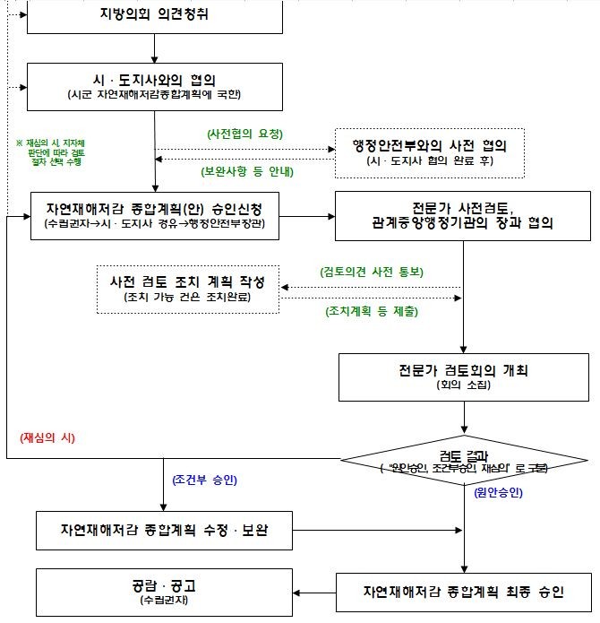 지난해 12월부터 자연재해저감 종합계획 제도 개선 TF를 꾸려 관련 전문가와 수립권자인 지자체의 의견을 수렴했고 지자체와 대행자가 알기 쉽도록 상세하게 보강해 업무 추진 시 어려움이 해소되도록 했다.