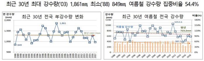우리나라는 계절별, 지역별 강수량의 편차가 크고 여름철에 집중됨에 따라 빗물의 효율적 활용에 한계가 있으며 산발적 가뭄은 물론 상습적 가뭄발생 지역이 상존하고 있다.