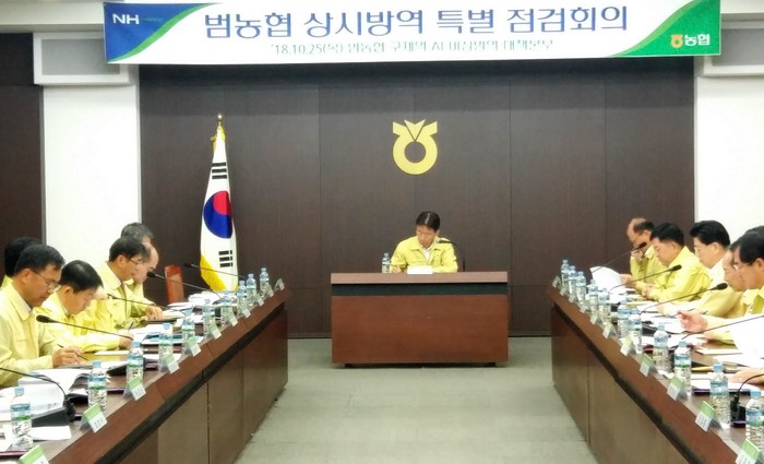 [환경데일리 윤경환 기자]농협중앙회(김병원 회장)는 25일 구제역, AI, 아프리카돼지열병 예방 및 확산 방지를 위한 '범농협 AI 비상방역 대책회의'를 개최했다.