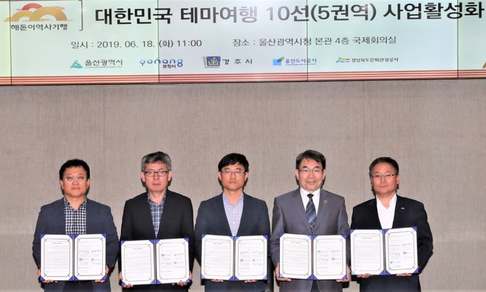 [환경데일리 이은주 기자]경주시는 18일 울산시청 국제회의실에서 해오름동맹도시인 경주·울산·포항 3개 도시가 함께 추진하고 있는 문체부 공모사업인 '대한민국 테마여행 10선, 해돋이역사기행' 사업추진 활성화를 위해 경상북도 문화관광공사와 울산도시공사가 한자리에 모여 상호협력 증진 MOU를 체결했다.