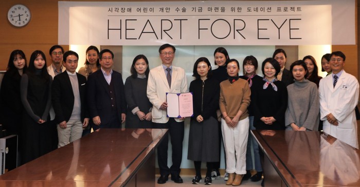 삼성서울병원과 삼성물산 패션부문 브랜드 구호(KUHO), 르베이지(LEBEIGE) / CJ CGV, 설화수는 8일, 시각장애 어린이 돕기 프로젝트 '하트포아이(Heart For Eye)' 캠페인 제 13차(2018년) 기금 전달식을 가졌다고 밝혔다.