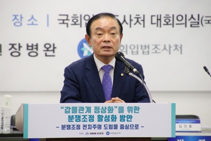 민주평화당 장병완 의원(광주 동구남구갑) 주최로 2일, 국회입법조사처 대회의실에서 '갑을관계 정상화를 위한 분쟁조정 활성화 방안-분쟁조정 전치주의 도입을 중심으로 토론회가 열렸다. 토론회에서 분쟁조정제도 운영 10년을 되짚어 보고, 분쟁조정 전치주의 도입을 위한 정책방향이 논의됐다.