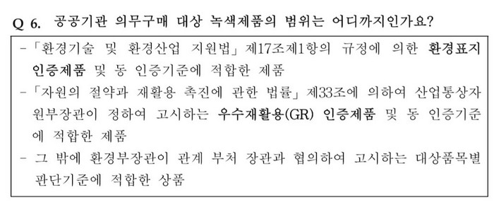 아울러 현행 '녹색제품 인증취득 여부 미(未)규정'은 입찰자격 역시 '녹색제품 인증(GR 인증)을 취득한 자'로 바꿔달라고 요구하고 있다.