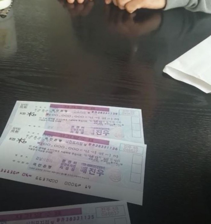 | ▲범죄자가 공익제보자가 된 장 모씨는 원래 처음 공익제보한 이 모씨를 회유하기 위한 척하는 행동으로 1억 원 수표 5장을 내밀며 외부로 문제를 발설하지 말라고 하는 교활함도 보였다. |