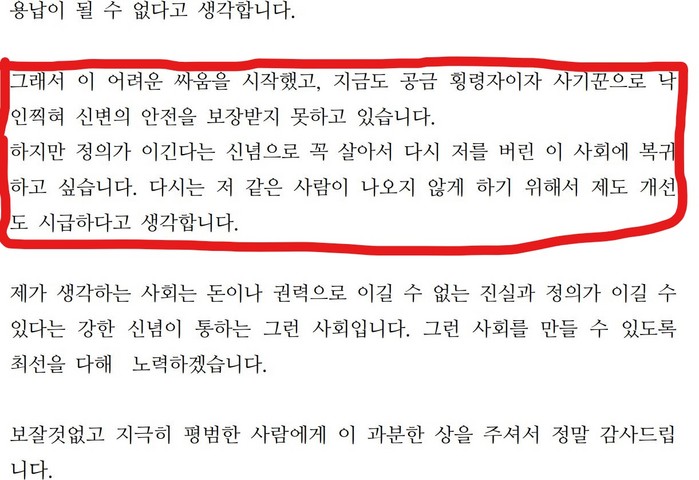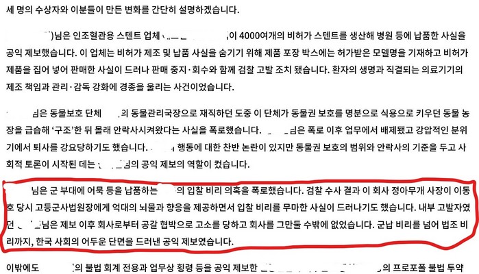 | ▲공익제보상을 받은 범죄자가 수상 소감을 이렇게 표현했다. 하지만 재판에서 사실이 아닌 것으로 드러났다. 사진 재단에서 발췌 |