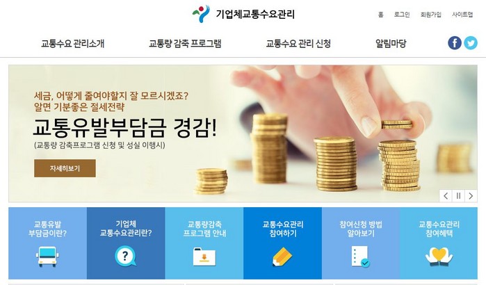 '기업체 교통수요관리제도'는 연면적 1000㎡ 이상의 시설이나 기업에서 승용차 요일제, 주차장 유료화, 통근버스 운영 등의 감축 프로그램을 실시하고 교통량을 감축하는 경우 그 이행 실적에 따라 교통유발부담금을 감면해주는 교통수요관리 방안이다.