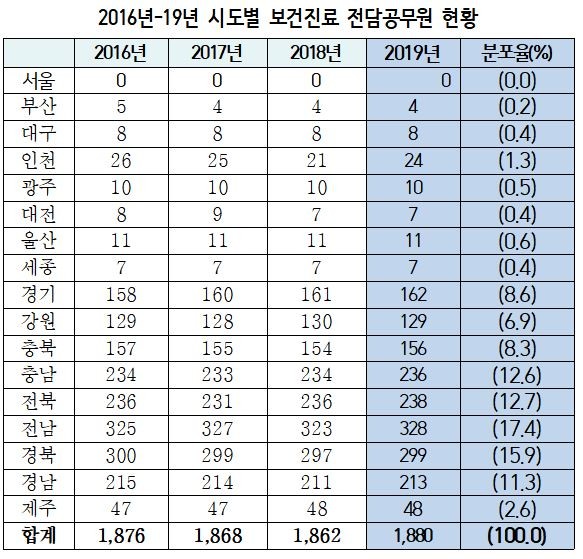 이어 서울은 0명인데, 전남지역의 경우 328명이 근무하고 있는 보건진료전담공무원의 사례를 되새겼다.