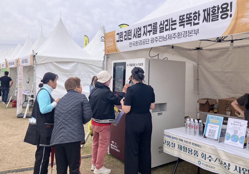 공단은 '그린 리턴 사업(고품질 재활용품 회수·보상 사업)' 인식 확산을 위해 지역잔치 한마당에서 자원순환 부스를 운영하고 있다.