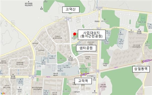 ▲ '서울, 꽃으로 피다'캠페인과 연계 기업의 사회공헌활동으로 탄소 상쇄의 먼지 먹는 숲, 동자근린공원 위치 |