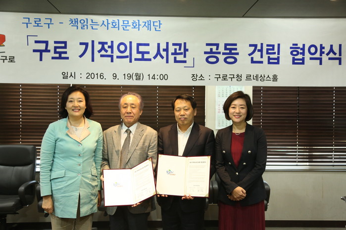 구로구는 책읽는사회문화재단과 기적의도서관을 공동건립하기로 하고 19일 구청 르네상스홀에서 협약식을 개최했다.