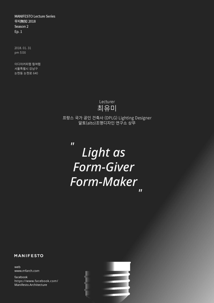 포럼 '무지(無知)'는 '미국건축가협회상', '올해의 건축가 100;선정 등 실력을 인정받은 수석 디자이너그룹 매니페스토에서 주최하는 포럼이다.