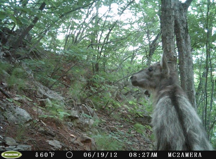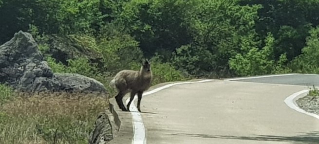 ▲삼척시농업기술센터 발췌, 덕풍계곡 가는 길에 나타난 산양 모습이 포착됐다. |