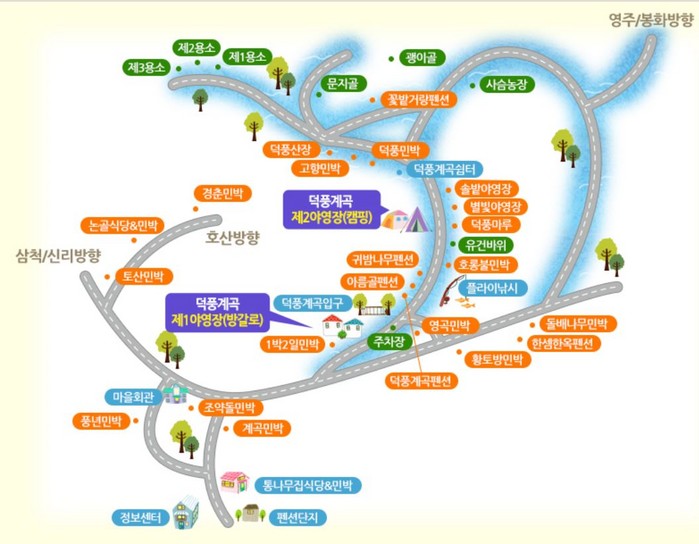 덕풍계곡은 제 1코스 왕복 5.6km를 비롯 제 2코스 32.8km, 제 3코스 25.1km로 각각 트레킹을 할 수 있다고 홍보하고 있다.