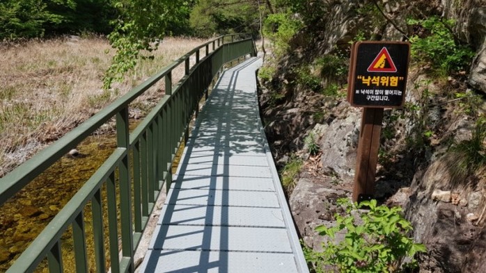 ▲덕풍계곡 옆으로 철제길을 만들어 트레킹, 등산객 등에게 편의를 제공하고 있지만, 정작 생태계 훼손에 대한 부분을 미흡하다. |
