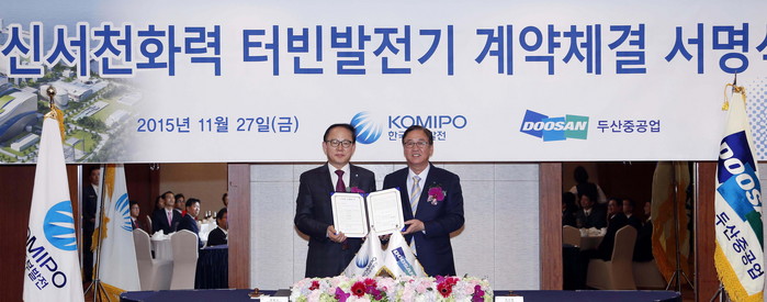 [환경데일리 최진경 기자] 두산중공업(대표이사 부회장 박지원)은 27일, 한국중부발전과 약 1000억원 규모의 신서천화력발전소 터빈·발전기 공급계약 서명식을 개최했다고 30일 밝혔다.