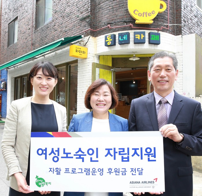 아시아나항공(사장 김수천)은 21 서울 서대문구 소재 사단법인 열린복지(이사장 황운성) 운영사무소에서 여성노숙인의 자립 지원을 위한 후원금 전달식을 가졌다.