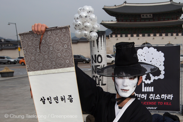 수 만 명의 무고한 시민들의 목숨과 연관된 일이라면, 더욱 놀라운 일이겠죠? 그린피스는 정부의 석탄화력발전소 건설 허가는 살인면허를 발급하는 것과 같다.