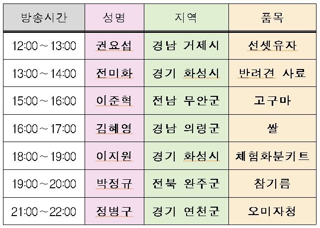 19일 네이버 쇼핑라이브 청년창업농 30%할인 판매