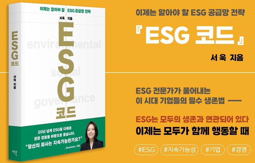 ㈜에코나인(econine) 서욱 대표는 20년 넘게 현장에서만 'ESG'만을 다뤘다. 그 경험치를 녹여담은 'ESG코드' 전문서를 펴냈다. 서욱 저자는 국내 전문 출판사 이콘으로부터 순수 선투자해 직접 의뢰를 받아서 집필했다.