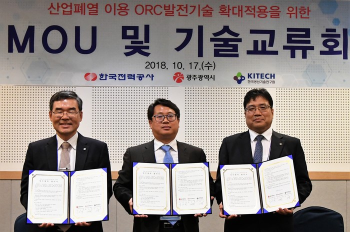 하루 전날 17일 한전은 광주광역시, 한국생산기술 연구원 등과 함께 폐열을 이용한 폐열회수 발전설비의 산업계 적용 확대와 사업화에 공동 협력하기로 하는 양해각서를 체결했다.