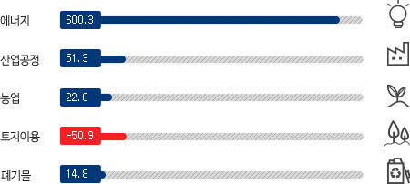 | ▲분야별 온실가스 배출량과 흡수량 © 환경데일리 |