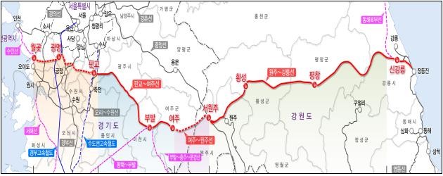 월곶~판교, 여주~원주 철도건설 사업이 추진되면 인천 송도에서 강릉까지 2시간 이내로 이동이 가능해짐에 따라 지역 경제 활성화 등에도 기여할 것으로 전망된다.