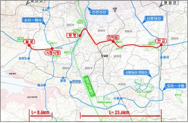 월곶~판교 복선전철 건설사업은 시흥시 월곶에서부터 광명, 안양, 과천을 거쳐 성남(판교)를 연결하는 사업으로 총 연장 39.4km, 총사업비 21,122억원(국고)이 투입될 예정이다.