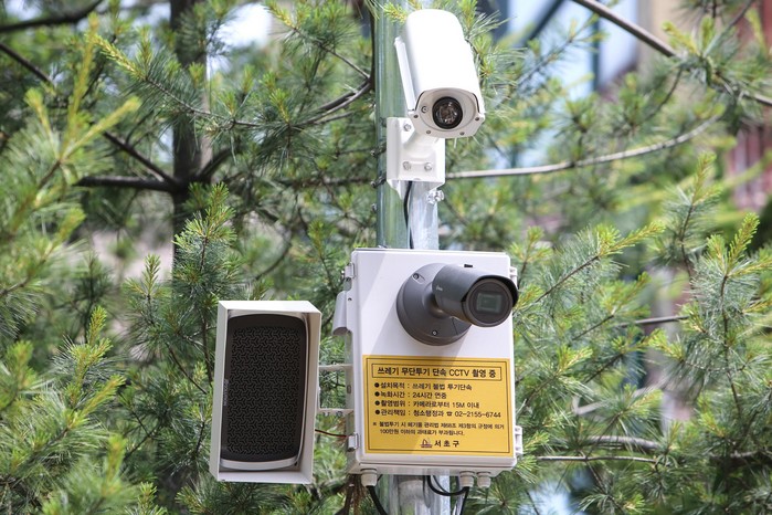 서울 서초구는 전국 최초로 쓰레기 무단투기 근절을 위해 상습 무단투기 장소 14곳에 사물인터넷(IOT)을 기반으로 한 쓰레기 무단투기 실시간 육성 경고방송 시스템(사진)을 시범운영 한다고 23일 밝혔다.