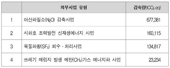 이번에 승인된 온실가스 배출권은 석유화학 업종에서 발생하는 아산화질소(N2O)를 감축한 사업(약 68만톤), 신재생에너지인 조력발전 사업(16만톤), 육불화황(SF6) 회수처리 사업(13만톤) 등에서 생산된 것이다.