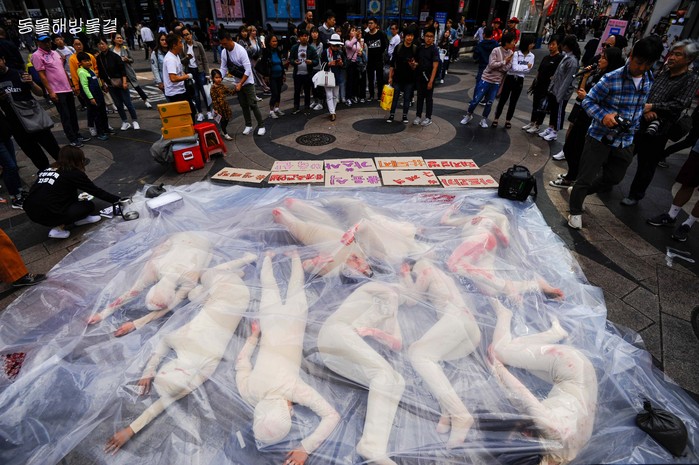동물해방물결측에 앞서 내놓은 자료에는 경기도 연천군 살처분 농가 주변에 묻은 돼지사체에서 흘러나온 피가 강을 빨갛게 물들려 국내 살처분 시스템에 한계를 드러냈다.