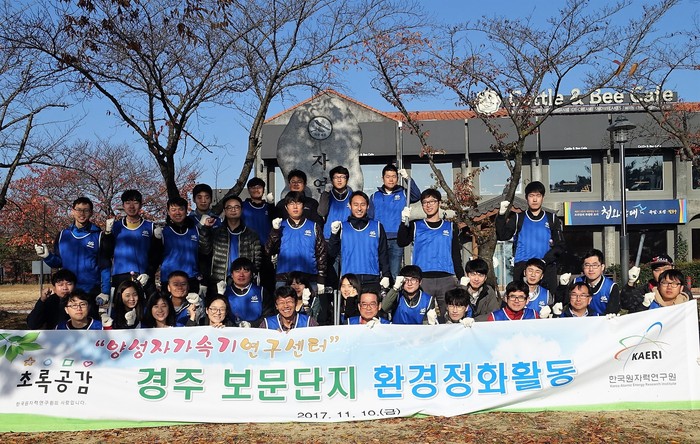 [환경데일리 이수진 기자]한국원자력연구원(원장 하재주) 양성자가속기연구센터는 10일 주민과의 상생을 위한 '깨끗한 지역사회 만들기'의 일환으로 보문단지 일원 환경정화활동을 실시했다.