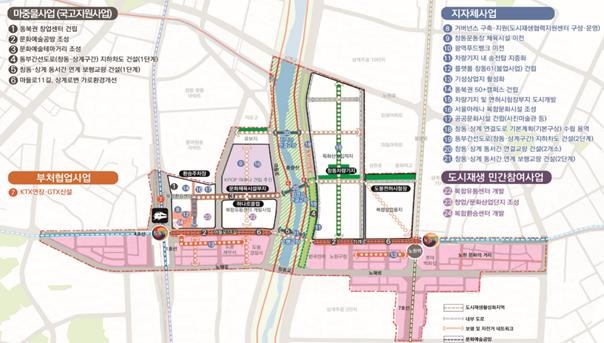 경기 부천시는 뉴타운 해제 등으로 쇠퇴한 지역(소사본동)에 성주산이 품은 활기찬 소사마을을 비전삼아 재생할 계획이다. 소사종합시장 환경 개선 및 마을기업 육성, 문화 환경 조성을 위한 예술창작소 등의 사업도 함께 추진한다.