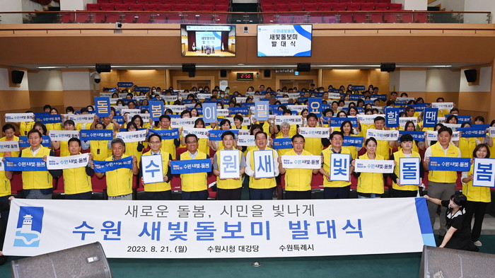 수원시는 21일 시청 대강당에서 새빛돌보미 발대식을 열었다. 발대식은 대표 선서, 이재준 수원특례시장의 인사말 등으로 진행됐다.