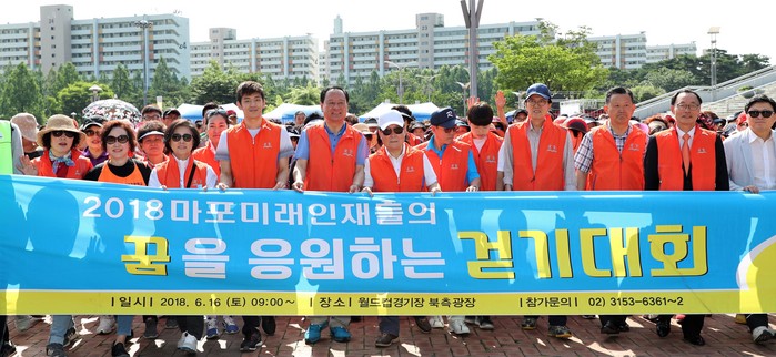 [환경데일리 이수진 기자]마포인재육성장학재단(이사장 권오범, 명예이사장 박홍섭 마포구청장)은 16일(토) 오전, 월드컵경기장 북측광장에서 '2018 마포인재들의 꿈을 응원하는 걷기대회'를 개최했다.