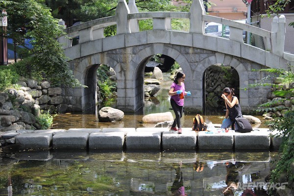| ▲7월 황지연못에서 PFC의 존재 여부를 실험하기 위해 물을 채취하고 있는 그린피스 활동가들 © 환경데일리 |