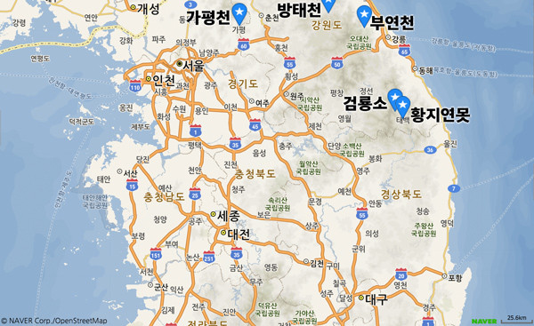 이에 따라 '가평천', '방태천', '부연천'의 최상류, '검룡소 연못', '황지 연못'이 조사지역으로 선정되었습니다. 이 지역들은 모두 우리나라 상수도의 근원이며, 멸종 위기 동식물의 마지막 안식처가 되어 주는 우수 생태 구역 이기도 합니다.