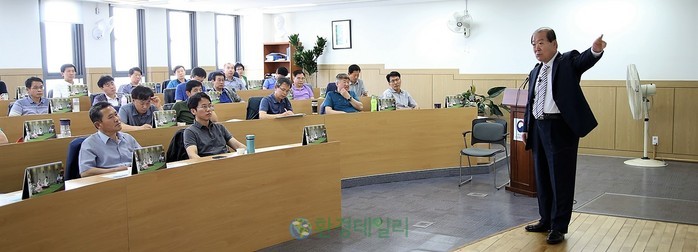 [환경데일리 이수진 기자]14일 오전, 박홍섭 마포구청장이 전북 완주에 위치해 있는 행정자치부 지방행정연수원에서 진행한 고위정책과정에서 '지방자치단체 명품정책 특강' 강사로 나서 교육에 참석한 3,4급 지방공무원 42명을 대상으로 특강을 펼치고 있다.
