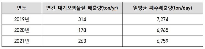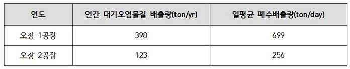 ▲대기업배터리 제조공장에서 배출되는 대기물질과 폐수배출량 |